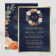 Earthy Floral Wreath All in One Navy Wedding Invitation