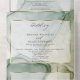 All in One Wedding - Chic earthy splash of alcohol ink stains in shades of muted greens and golds - each section highlighted with a sheer white overlay framed in gilded gold for an ethereal appeal a beautiful modern abstract design for an all in one wedding invitation complete with pre-addressed detachable meal choice rsvp for your guests to easily mail back - a stunning all in one wedding invitation - Easy to customise template.