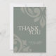 Earthy Olive Classy Elegant Damask Photo Wedding Thank You Card