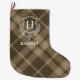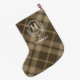 Earthy Plaid Monogram Initial Tartan Large Christmas Stocking