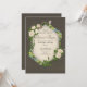 This wedding invitation features a dark, earthy background with a soft, rustic feel. At the centre is a beautiful white, arched window, framed with lush greenery, delicate white roses, and lichens. The text is elegantly placed inside the arch, inviting guests to join the couple in celebrating their wedding. The couple’s names are written in a graceful script, while the rest of the text is in a clear, serif font, making it easy to read.