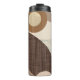 Boho inspired geometric design in shapes of brown, tan, beige and cyan with unique textures.