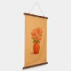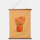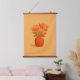Elevate your living space with this stunning minimalist botanical wall tapestry, featuring a vibrant bouquet of orange and peach flowers in a rustic terracotta vase. This design is rendered in a modern gouache style, showcasing rich, painterly textures and a warm, earthy color palette.