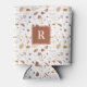 Earth tone terrazzo pattern, monogram can cooler. Trendy shades of rust orange, sandy beige and terra-cotta terrazzo pattern. Rusted orange square monogram space with template text with your initial.