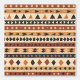 A bold geometric pattern featuring tribal-inspired shapes and earthy tones of brown, beige, and black. The repeating triangles, diamonds, and abstract forms create a warm, rustic feel. Perfect for bohemian decor, fashion, and textiles.
