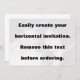 Easily create your own horizontal invitation. Change image with your own photo. Customise it if you want to change text, font size and colour and make your own invitation. Horizontal orientation but you can easily make it vertical. Don't forget to delete the large text before ordering.