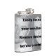 The flask itself is fine. It’s a cheap flask, obviously bought in bulk, however am prepared to overlook that. Given that it is a personalized item, I would have liked to have seen gift boxing instead of the generic packaging. Terrible printing, and/or quality. It’s a cheap, tacky vinyl. It is not cut straight and is also applied in a way that it is overhanging the bottom, causing the glue to catch on items and it will eventually roll and tear, damaging the wrap.