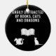Easily Distracted by books cats and dragons Ceramic Ornament