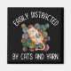 Easily Distracted By Cats And Yarn. Funny & cute yarn lover gift for a knitter, crocheter or yarn addict, who’s also a cat lover! Perfect if you love to knit, crochet or crafting with yarn. Includes a cartoon of a kitty sleeping on a pile of yarn. Do you love knitting, crocheting or weaving? Love to craft with wool, cashmere, alpaca or angora yarn? Do you like to use knitting needles, a crochet hook or a loom, and you’re a crafter who loves the fibre arts & cats? Then this design is for you!