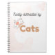 A cute and aesthetic notebook featuring the phrase “Easily distracted by cats” with a soft background inspired by warm cat tones.