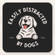 Easily distracted by dogs square paper coaster
