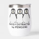 Easily Distracted by Penguins. Three cute and adorable chubby penguins cartoon graphic illustration design in black and white. Funny Saying/Slogan for Penguin Lovers. - All Rights Reserved.