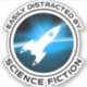 Easily Distracted By Science Fiction. Funny sci-fi lover gift idea for a man, woman, teens or kids who love science fiction, outer space and exploring the universe, and is a scifi geek or nerd. Do you love science fiction books, sci-fi tv shows or sci-fi movies? If you’re a sci-fi fan, and have a sense of humor, then this design is perfect for you! Cool retro spaceship rocket design would be great to wear to a science fiction convention.