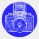A sticker with a high contrast, high passed filtered and vectorised image of a vintage East German camera from the 1950s. Creating a strong bold toothy retro screen print. or mediaeval Gothic brass rubbing like effect.