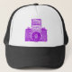 A hat with a high contrast, high passed filtered and vectorised image of a vintage East German camera from the 1950s. Creating a strong bold toothy retro screen print. or mediaeval Gothic brass rubbing like effect.