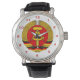 Wear a part of the deep dark past of Germany with this elegant East Germany wriswatch. The wristwatch has the old coat of arms of the German Democratic Republic on a white background with dark red numerals. The watch may be customised: style, colours, size, etc. For more itema like this, visit: www.zazzle.com/azorean*.