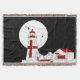 An illustration of East Quoddy Head Lighthouse ,also known as Head Harbour Lightstation. This is on Campobello island, New Brunswick Canada. The lighthouse is drawn in black and white under a full moon, which reflects in the ocean period the only colour comes from the distinctive red markings on the lighthouse and roofs of the buildings.