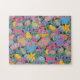 11” x 14” jigsaw puzzle with an image of pink, blue, yellow and purple wicker Easter baskets, beautifully decorated Easter eggs in hues of blue, pink, yellow, green and purple, violets, yellow daffodils, and chicks. See the entire Easter Puzzle collection under the HOME category in the HOLIDAYS section.