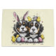 Cute illustration of Bernese Mountain dogs dressed up for Easter. Perfect for pet lovers or dog parents for Easter.
