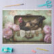 Enhance your creative projects with this striking decoupage tissue paper design. Featuring a regal black hen resting on delicate lace inside a beautifully aged green suitcase, surrounded by lush pink peonies, this artwork exudes rustic elegance and artistic sophistication. The soft floral turquoise background adds a timeless charm, making this design perfect for farmhouse-inspired decor, easter, weddings, gift wrapping, or DIY crafts. Elevate your creations with this unique and luxurious design.