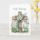 Easter is a time of joy, renewal, and hope, and this beautifully designed card is perfect for sharing warm wishes with anyone. Featuring a wooden cross draped in soft blue flowers against a rustic white fence, the design captures the beauty of the season. Inside, a simple yet thoughtful message sends Easter blessings and good wishes for a happy and bright spring. A lovely way to spread holiday cheer.