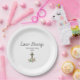 Easter Blessings paper plate, with a Christian cross and a decorated eggs design. With customizable lettering, you add your own text. A lovely addition to your Easter brunch table.