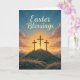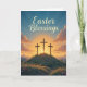 A meaningful Easter card showcasing three crosses under a tranquil blue sky, symbolising faith, redemption, and hope. A wonderful way to send Easter wishes to loved ones.