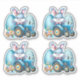 A sheet of 4 blue rabbits driving a blue tractor hauling Easter eggs to add to your kids Easter gift packages