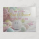 A cute plush bunny sitting on a table decorated with pastel-coloured eggs is the backdrop for this Easter Brunch invitation postcard. Add your details to the back of the card and you're good to go. We wish you a fun-filled get-together with your friends and family.