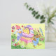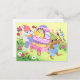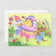 Two delightful Easter bunny rabbits parade down a colourful spring path of blooming flowers, accompanied by a painted Easter egg and a fuzzy yellow chick.