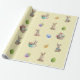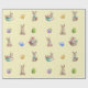 This wrapping paper is so cute for Easter, with its pattern of watercolor painted Easter bunnies and coloured Easter eggs. It has a background of lemon yellow with white polka dots.