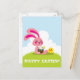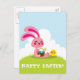 Pink bunny holding a basket full of colourful Easter eggs with little chick friend. Celebrate Easter Holiday and greet spring season with this cute and original design by Kakigori Studio.