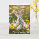 Personalised Easter bunny Easter card with an inside colouring page. Cute bunny sitting in grass full of flowers and Easter Eggs.