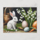 Easter Bunny and Lily of the Valley Flowers Holiday Postcard