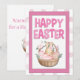 Send a basketful of blessings this year with this sweet & cozy Easter card. This design features a precious bunny nestled inside a rustic wooden basket, surrounded by beautifully patterned pink Easter eggs and delicate floral blooms. The soft, blush-pink board and subtle watercolor plaid background create a warm, inviting feel that's perfect for celebrating the miracle of spring!