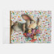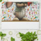 A Cute And Colorful Kitchen Dish Towel For Your Easter Decor Designed With A Bunny Holding A Bouquet of Flowers