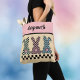 Easter Bunny Checkerboard Pink Green Yellow Name Tote Bag