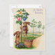 This spring send someone an Easter greeting! This vintage print depicts Easter bunnies picking coloured Easter eggs from trees.