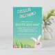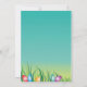 This colourful Easter Egg Hunt invitation features a pink Easter bunny, coloured eggs in the grass and a banner with the text: Happy Easter. Customisable text allows you to add your event information. The background is a teal blue and the banner is multiple pastel colours.