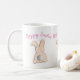 Cute easter coffee mug. White mug featuring the back side of a cottontail bunny with the words "Happy Easter" in fun typography.