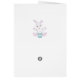 Cute Easter bunny with Easter egg and flower Happy Easter Card. Text can be personalised for Easter or Birthday. Bunnies symbolise longevity, abundance and good fortune.