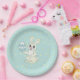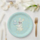 Easter Bunny & Flower Pattern on Light Blue Paper Plate