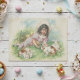 Easter Bunny Girl Vintage Postcard Card Tissue Paper