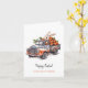 Easter bunny in rustic vintage truck greeting card. Rustic watercolors and lineart style cute bunny rabbit driving a retro vintage truck full of carrots. Personalised text with a lovely trendy script.