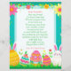 Add your child's name to this customizable letter from the Easter Bunny. On the back is some fun questions for your child to answer. Cute pink, teal, yellow and green letter with Easter eggs, bunny, carrots, flowers i pastel colors.