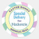 This holiday sticker label features a cute and colourful Easter theme. A pastel coloured swirl pattern borders the sticker in shades of pink, green, blue, and purple. The title "Easter Bunny Official Seal" is printed in a circular pattern over a yellow banner, to resemble an official seal. The Special Delivery label is printed in the centre, followed by a sample name which you can personalise to include your own custom name or text.