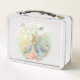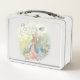 This is a standard metal lunchbox that appears to work just fine. We designed this box ourselves with an uploaded photo and custom text on the front and back. It looks absolutely beautiful except the front of the lunchbox is not centered like it shows in the photo. The print borders don't align with the inset flat part of the box where the preview photo online showed it perfectly centered in there. The back looks nice and centered though.