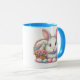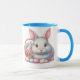 An adorable white Easter bunny is ready with a basket of Easter pastel eggs and spring flowers is ready for hiding on Easter morning. This pretty mug is ready for your Easter morning coffee or tea!