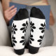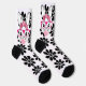 Popart funny bunny socs with black flowers and white rabbit with pink glases and chewing gum bubble