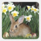 Young bunny rabbit in daffodils guards his Easter eggs square sticker
